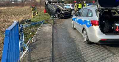 Kierowca Volkswagena wypadł z jezdni i dachował na ulicy Czyżowickiej w Wodzisławiu. Nikomu nic się nie stało, kierowca został ukarany mandatem....